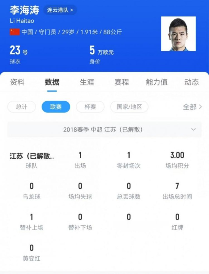 连云港门将李海涛: 江苏上场7分钟等了5年, 奥体踢满全场等了7年