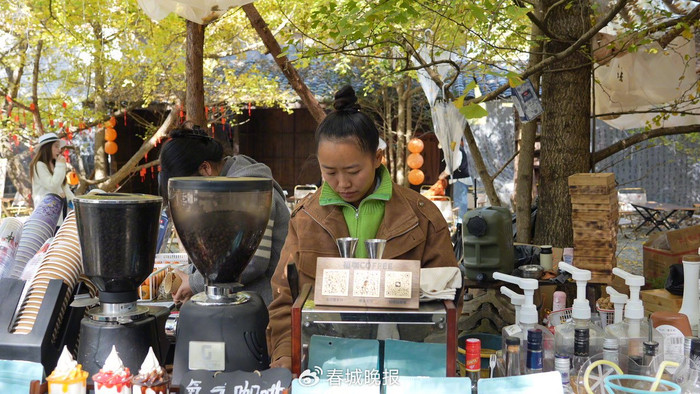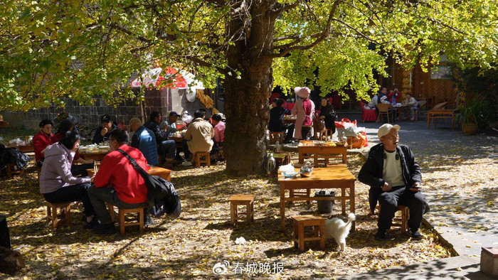 金黄的银杏树下,一批特色咖啡店陆续亮相,成为游客打卡新选择。来自芒市的游客方先生说:“在银杏树下喝咖啡感觉很好,风景也很不错!”据江东村村干部介绍,银杏村咖啡相关产业多点开花,涵盖村民打工、店面出租及咖啡销售等领域,预计今年总收入在500万元左右。
