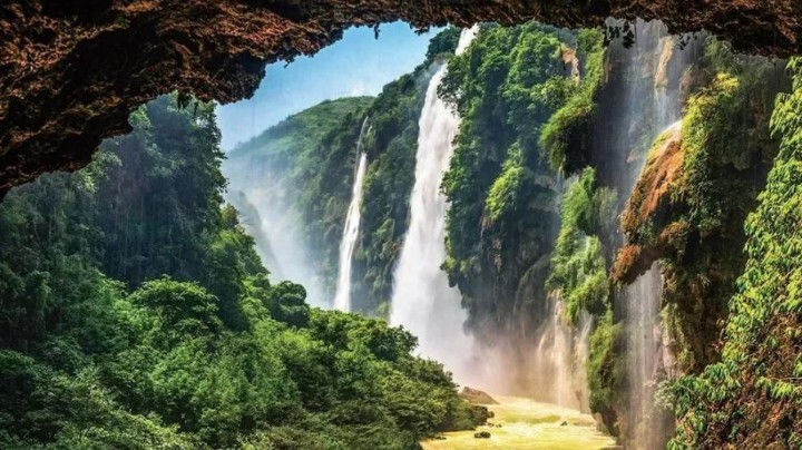 马岭河峡谷被誉为“地球上美丽的伤疤”。峡谷内瀑布成群,岩溶壁挂,集雄、奇、险、幽为一体。世界第一铁路高桥——清水河大桥横跨而过,成为高铁旅途中的一道壮观景色。
