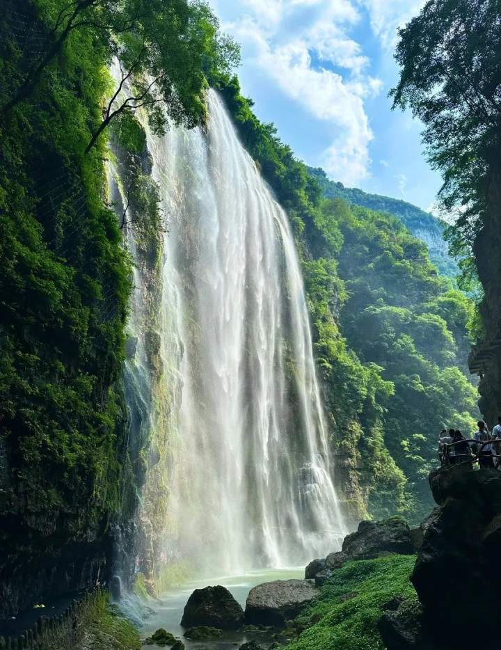 袁家界的后花园更是“私人观景台”。360度全景毫无遮挡,远处的山峰层叠着,近处的九重葛瀑布从石缝里泻下来,粉紫色的花挂在瀑布边,水溅在石头上碎成雪沫子。坐在瀑布边的石头上,听着水流声,看着山景慢慢变浅,才懂张家界的“仙”,从来不在人挤人的景点里,在这些藏着的小路上。