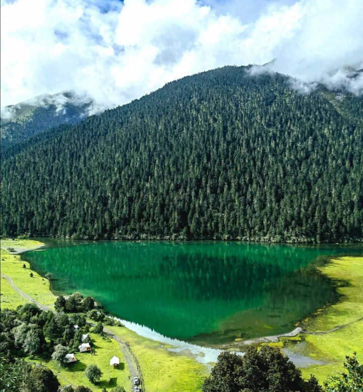 云南无底湖:藏在香格里拉腹地的无底湖,是连本地司机都要查导航的秘境。没有刷漆的栈道,没有叫卖牦牛肉干的摊贩,只有一汪蓝得像被雪山滤过的湖水,静卧在山谷里。清晨的雾刚散时,远处的哈巴雪山尖顶着一点白,影子沉在湖里,水清得能看见底下灰黑色的碎石和窜动的小鱼,风一吹,湖面的波纹把雪山影揉成细碎的蓝。