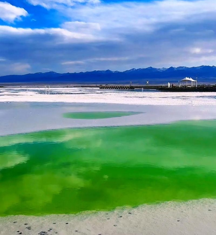 茶卡盐湖终于不用苦等两小时拍“天空之镜”。赤脚踩进浅水区,湖水刚没过脚踝,凉丝丝的不冰脚,盐粒硌得脚心有点痒。抬头时,天和湖连在一起,白的云、蓝的天全映在水里,走几步就像飘在云里,随便摆个姿势,都是不用修图的大片。